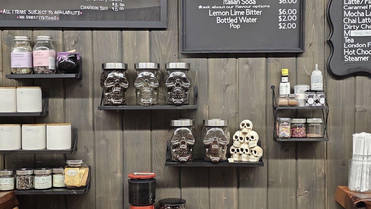 The menu includes a variety of food and drink options suitable for breakfast, coffee breaks, and light meals. Visitors can expect a range of coffee and tea beverages, including specialty and locally made options. The bakery selection features both fresh and day-old items, offering baked goods such as cinnamon rolls, butter tart triangles, brownies, and cakes, with consideration given to gluten-free dietary needs.